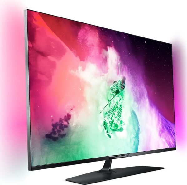 Die einzigartige 2-seitige Ambilight-Technologie von Philips erweitert Ihren Bildschirm und macht Ihr Seherlebnis noch immersiver, indem sie einen extra breiten Lichtkranz von zwei Seiten des Fernsehers an die Wand projiziert. Farben, Lebendigkeit und Emotionen springen förmlich vom Bildschirm und erfüllen Ihr Wohnzimmer – für ein noch intensiveres und kraftvolleres Erlebnis.